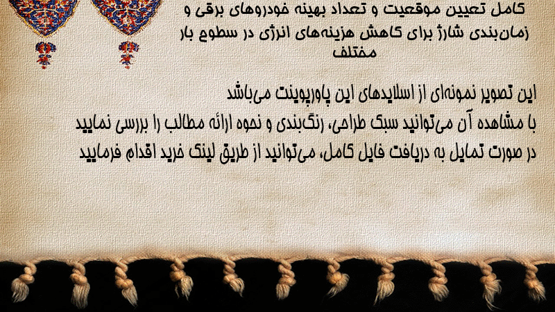 پاورپوینت کامل تعیین موقعیت و تعداد بهینه خودروهای برقی و زمانبندی شارژ برای کاهش هزینههای انرژی در سطوح بار مختلف