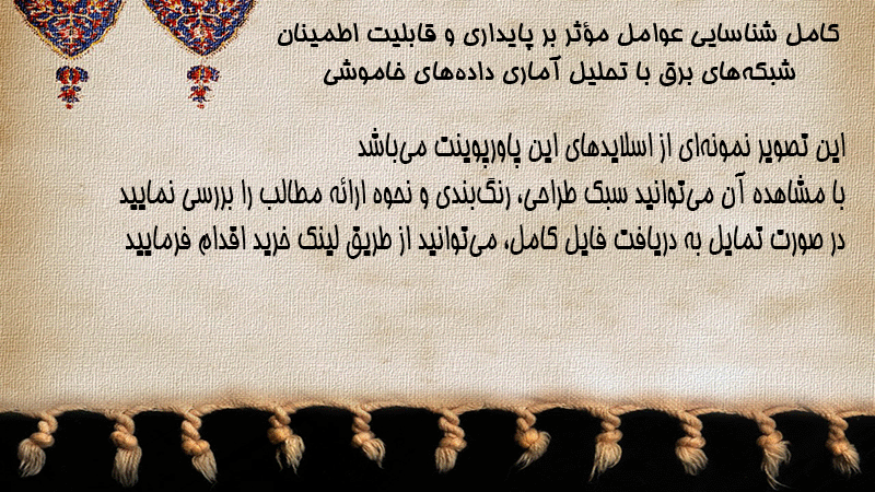 پاورپوینت کامل شناسایی عوامل مؤثر بر پایداری و قابلیت اطمینان شبکههای برق با تحلیل آماری دادههای خاموشی