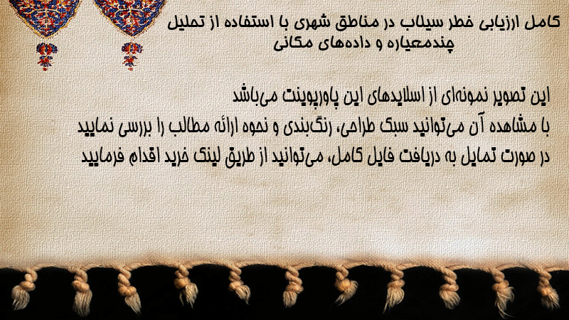 پاورپوینت کامل ارزیابی خطر سیلاب در مناطق شهری با استفاده از تحلیل چندمعیاره و دادههای مکانی