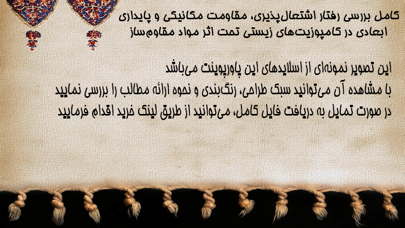 پاورپوینت کامل بررسی رفتار اشتعالپذیری، مقاومت مکانیکی و پایداری ابعادی در کامپوزیتهای زیستی تحت اثر مواد مقاومساز