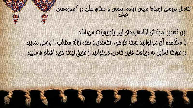 پاورپوینت کامل بررسی ارتباط میان اراده انسان و نظام علّی در آموزههای دینی