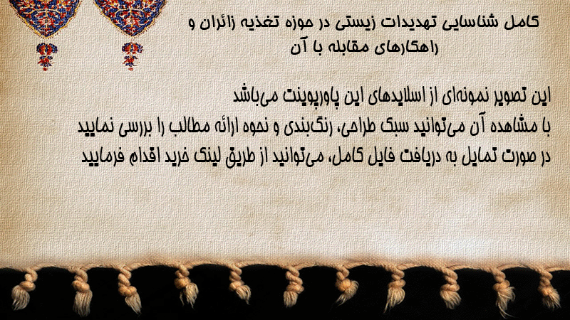 پاورپوینت کامل شناسایی تهدیدات زیستی در حوزه تغذیه زائران و راهکارهای مقابله با آن