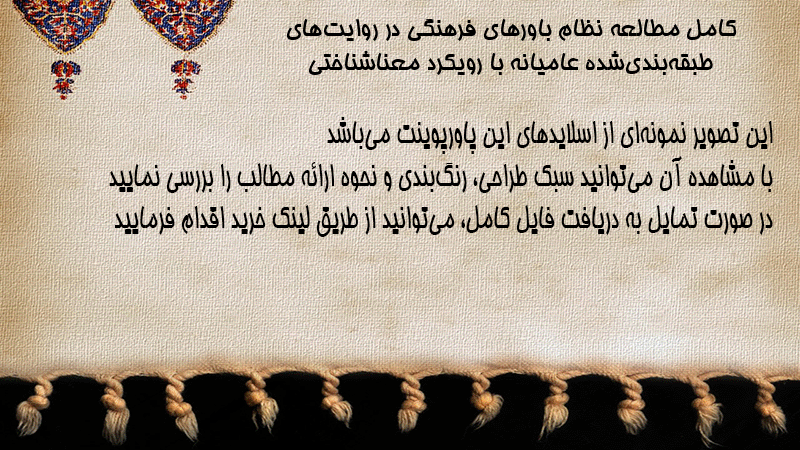 پاورپوینت کامل مطالعه نظام باورهای فرهنگی در روایتهای طبقهبندیشده عامیانه با رویکرد معناشناختی
