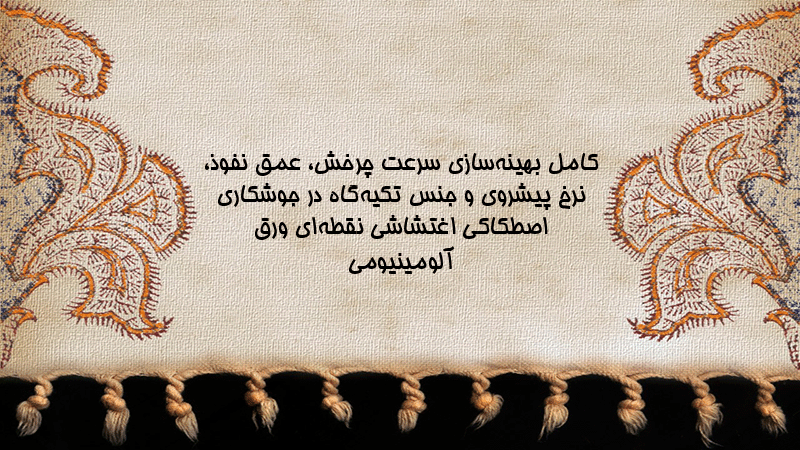 پاورپوینت کامل بهینهسازی سرعت چرخش، عمق نفوذ، نرخ پیشروی و جنس تکیهگاه در جوشکاری اصطکاکی اغتشاشی نقطهای ورق آلومینیومی