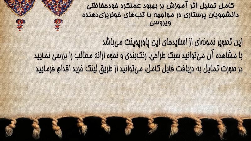 پاورپوینت کامل تحلیل اثر آموزش بر بهبود عملکرد خودحفاظتی دانشجویان پرستاری در مواجهه با تبهای خونریزیدهنده ویروسی