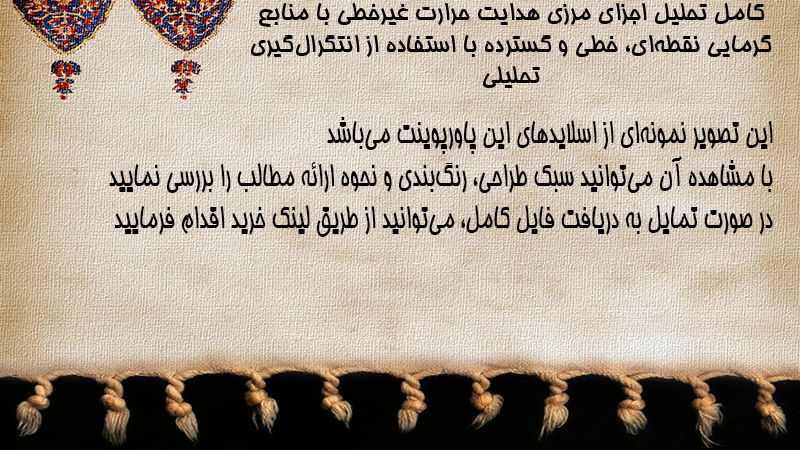 پاورپوینت کامل تحلیل اجزای مرزی هدایت حرارت غیرخطی با منابع گرمایی نقطهای، خطی و گسترده با استفاده از انتگرالگیری تحلیلی