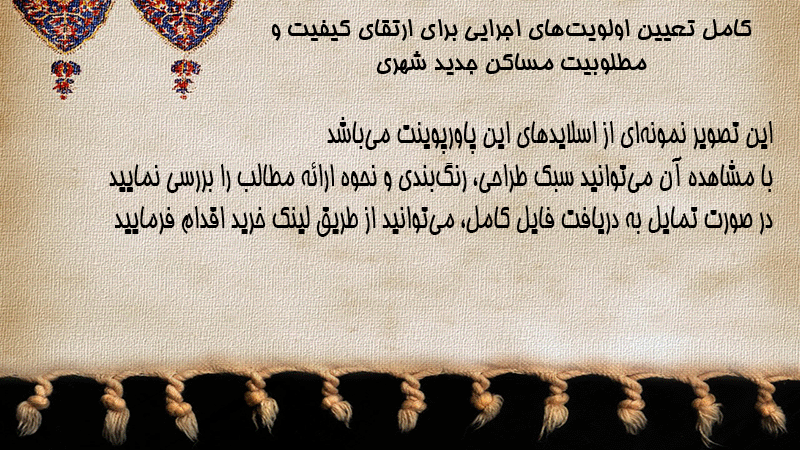 پاورپوینت کامل تعیین اولویتهای اجرایی برای ارتقای کیفیت و مطلوبیت مساکن جدید شهری