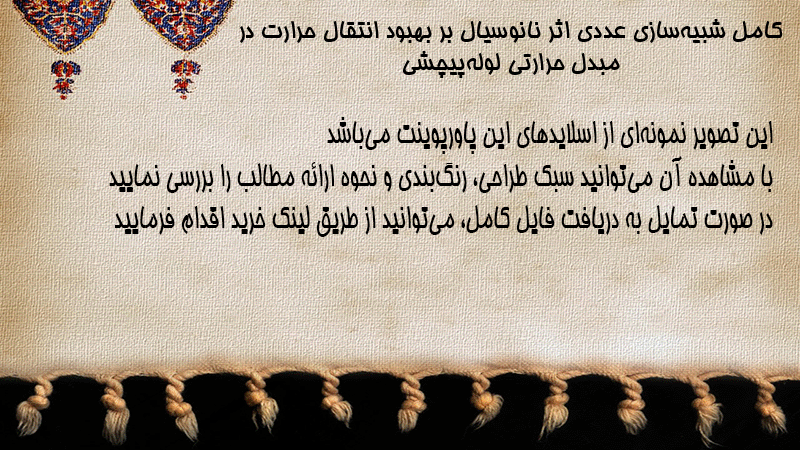 پاورپوینت کامل شبیهسازی عددی اثر نانوسیال بر بهبود انتقال حرارت در مبدل حرارتی لولهپیچشی