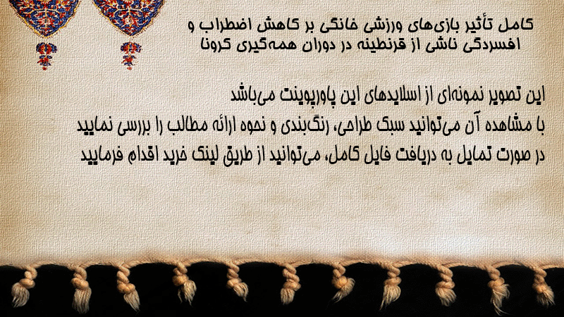 پاورپوینت کامل تأثیر بازیهای ورزشی خانگی بر کاهش اضطراب و افسردگی ناشی از قرنطینه در دوران همهگیری کرونا