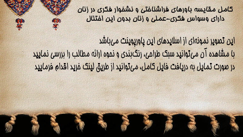 پاورپوینت کامل مقایسه باورهای فراشناختی و نشخوار فکری در زنان دارای وسواس فکری-عملی و زنان بدون این اختلال