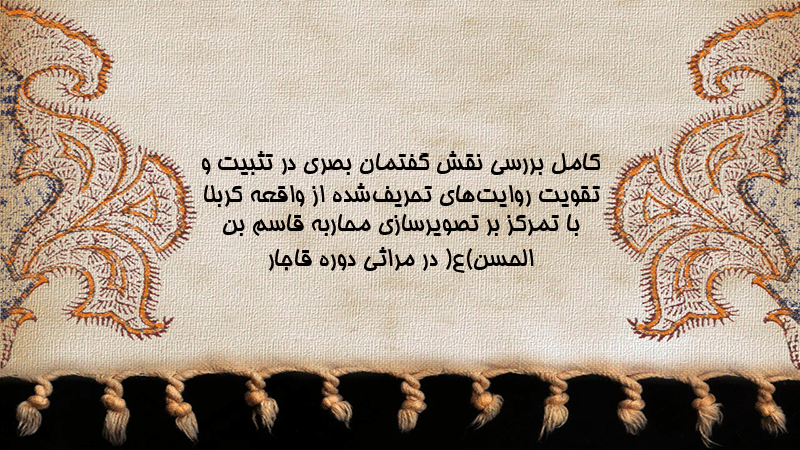 پاورپوینت کامل بررسی نقش گفتمان بصری در تثبیت و تقویت روایتهای تحریفشده از واقعه کربلا با تمرکز بر تصویرسازی محاربه قاسم بن الحسن(ع) در مراثی دوره قاجار