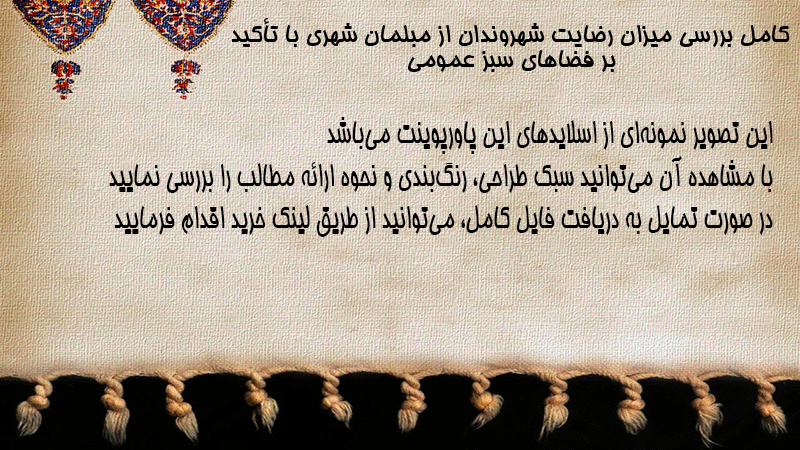 پاورپوینت کامل بررسی میزان رضایت شهروندان از مبلمان شهری با تأکید بر فضاهای سبز عمومی