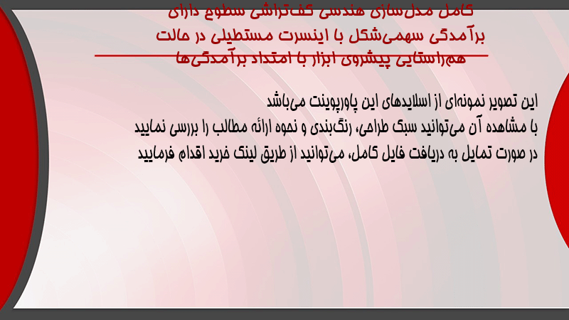 پاورپوینت کامل مدلسازی هندسی کفتراشی سطوح دارای برآمدگی سهمیشکل با اینسرت مستطیلی در حالت همراستایی پیشروی ابزار با امتداد برآمدگیها