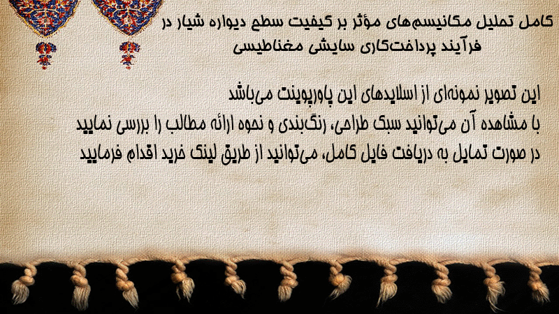 پاورپوینت کامل تحلیل مکانیسمهای مؤثر بر کیفیت سطح دیواره شیار در فرآیند پرداختکاری سایشی مغناطیسی