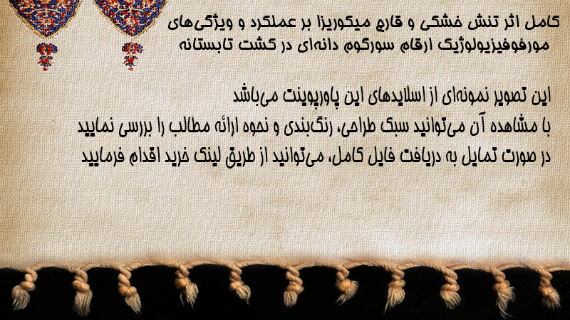 پاورپوینت کامل اثر تنش خشکی و قارچ میکوریزا بر عملکرد و ویژگیهای مورفوفیزیولوژیک ارقام سورگوم دانهای در کشت تابستانه