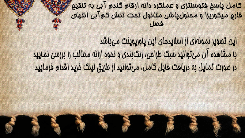 پاورپوینت کامل پاسخ فتوسنتزی و عملکرد دانه ارقام گندم آبی به تلقیح قارچ میکوریزا و محلولپاشی متانول تحت تنش کمآبی انتهای فصل
