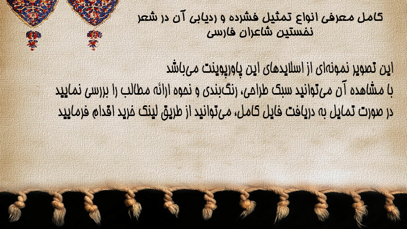 پاورپوینت کامل معرفی انواع تمثیل فشرده و ردیابی آن در شعر نخستین شاعران فارسی
