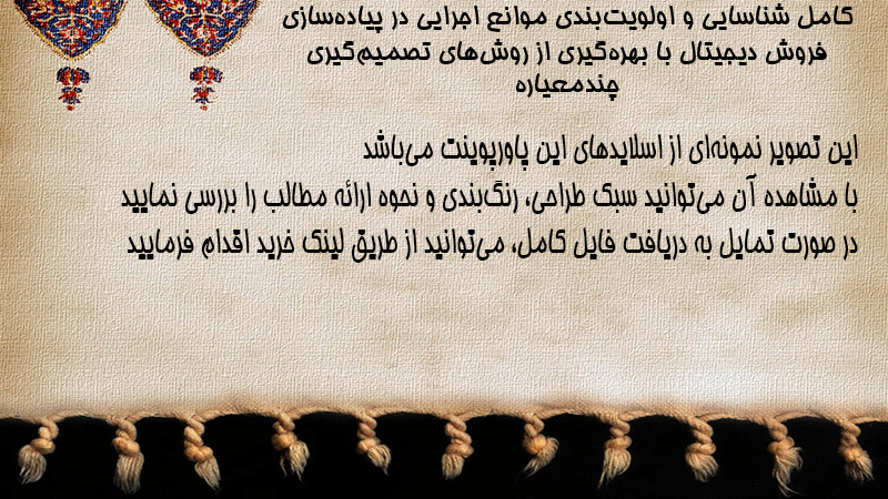 پاورپوینت کامل شناسایی و اولویتبندی موانع اجرایی در پیادهسازی فروش دیجیتال با بهرهگیری از روشهای تصمیمگیری چندمعیاره