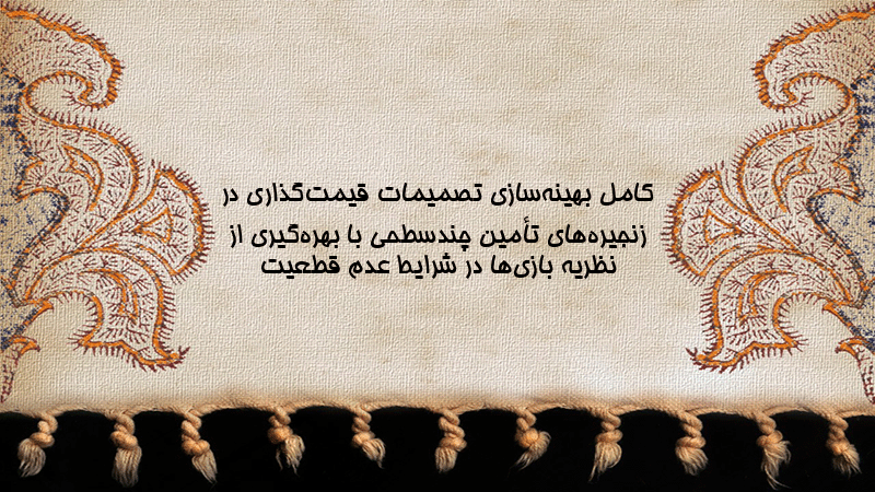 پاورپوینت کامل بهینهسازی تصمیمات قیمتگذاری در زنجیرههای تأمین چندسطحی با بهرهگیری از نظریه بازیها در شرایط عدم قطعیت