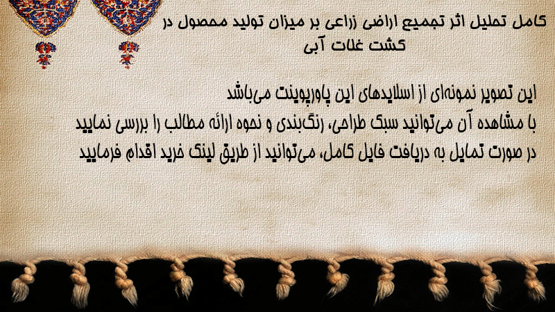 پاورپوینت کامل تحلیل اثر تجمیع اراضی زراعی بر میزان تولید محصول در کشت غلات آبی