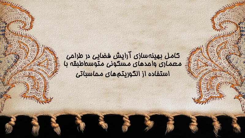 پاورپوینت کامل بهینهسازی آرایش فضایی در طراحی معماری واحدهای مسکونی متوسططبقه با استفاده از الگوریتمهای محاسباتی