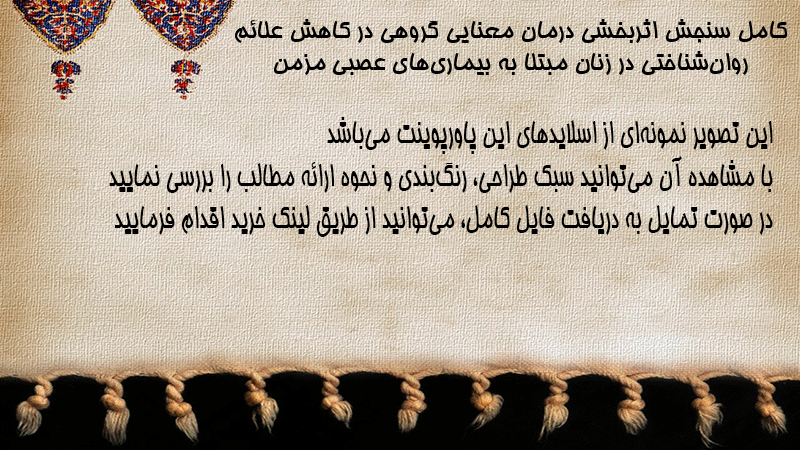 پاورپوینت کامل سنجش اثربخشی درمان معنایی گروهی در کاهش علائم روانشناختی در زنان مبتلا به بیماریهای عصبی مزمن