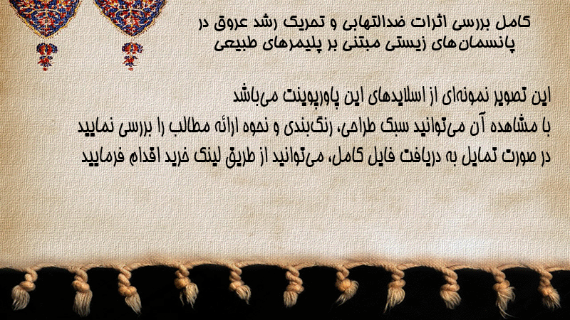 پاورپوینت کامل بررسی اثرات ضدالتهابی و تحریک رشد عروق در پانسمانهای زیستی مبتنی بر پلیمرهای طبیعی