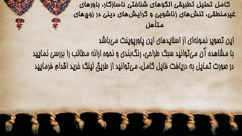 پاورپوینت کامل تحلیل تطبیقی الگوهای شناختی ناسازگار، باورهای غیرمنطقی، تنشهای زناشویی و گرایشهای دینی در زوجهای متأهل