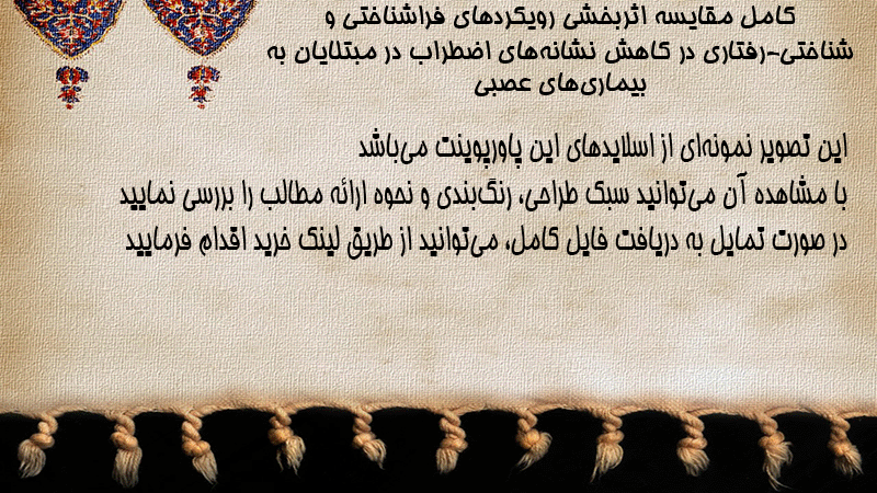 پاورپوینت کامل مقایسه اثربخشی رویکردهای فراشناختی و شناختی-رفتاری در کاهش نشانههای اضطراب در مبتلایان به بیماریهای عصبی