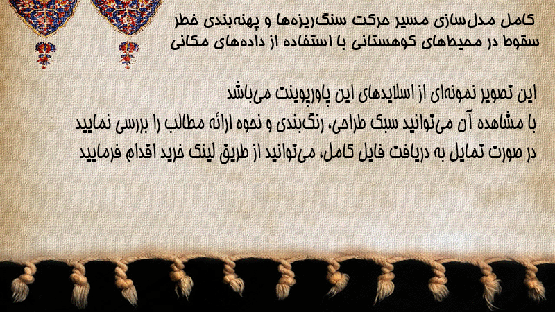 پاورپوینت کامل مدلسازی مسیر حرکت سنگریزهها و پهنهبندی خطر سقوط در محیطهای کوهستانی با استفاده از دادههای مکانی