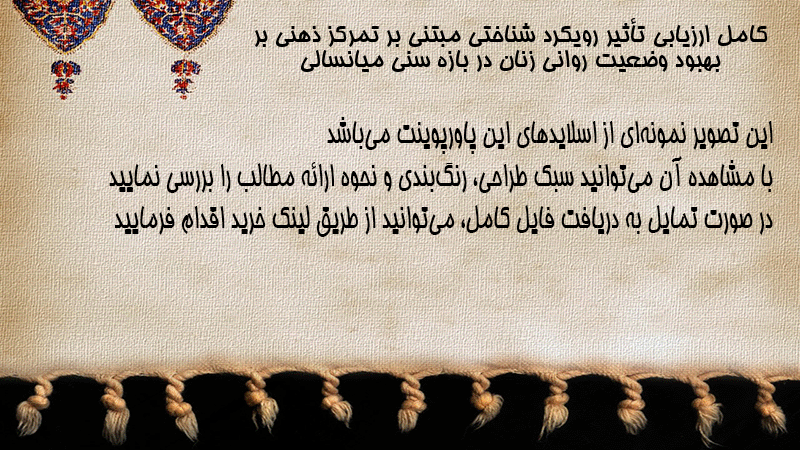 پاورپوینت کامل ارزیابی تأثیر رویکرد شناختی مبتنی بر تمرکز ذهنی بر بهبود وضعیت روانی زنان در بازه سنی میانسالی