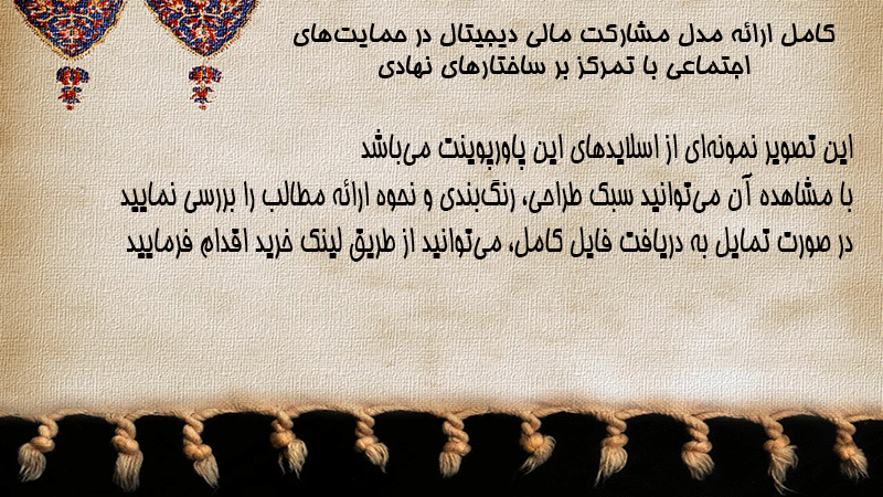 پاورپوینت کامل ارائه مدل مشارکت مالی دیجیتال در حمایتهای اجتماعی با تمرکز بر ساختارهای نهادی