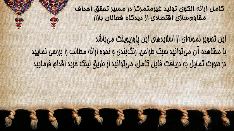 پاورپوینت کامل ارائه الگوی تولید غیرمتمرکز در مسیر تحقق اهداف مقاومسازی اقتصادی از دیدگاه فعالان بازار