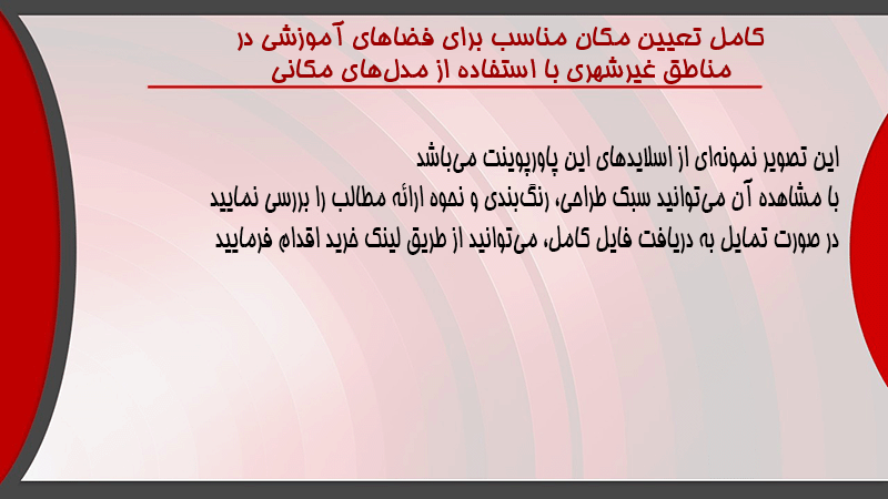 پاورپوینت کامل تعیین مکان مناسب برای فضاهای آموزشی در مناطق غیرشهری با استفاده از مدلهای مکانی