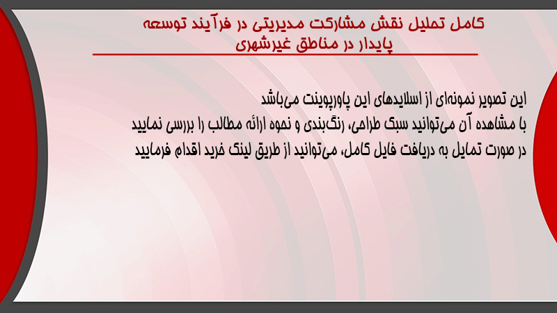 پاورپوینت کامل تحلیل نقش مشارکت مدیریتی در فرآیند توسعه پایدار در مناطق غیرشهری