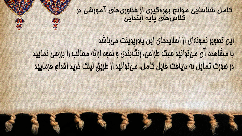 پاورپوینت کامل شناسایی موانع بهرهگیری از فناوریهای آموزشی در کلاسهای پایه ابتدایی