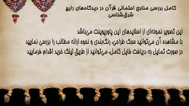 پاورپوینت کامل بررسی منابع احتمالی قرآن در دیدگاههای رایج شرقشناسی