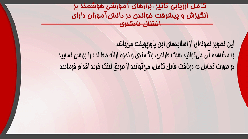 پاورپوینت کامل ارزیابی تأثیر ابزارهای آموزشی هوشمند بر انگیزش و پیشرفت خواندن در دانشآموزان دارای اختلال یادگیری