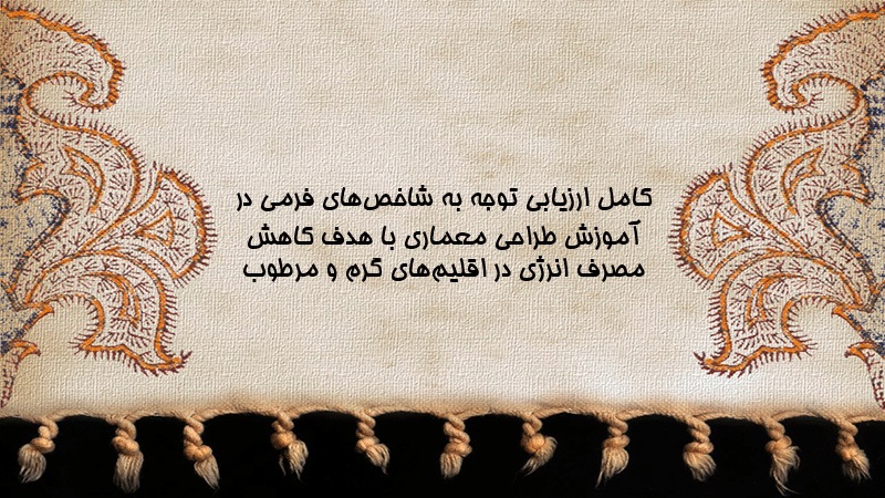 پاورپوینت کامل ارزیابی توجه به شاخصهای فرمی در آموزش طراحی معماری با هدف کاهش مصرف انرژی در اقلیمهای گرم و مرطوب