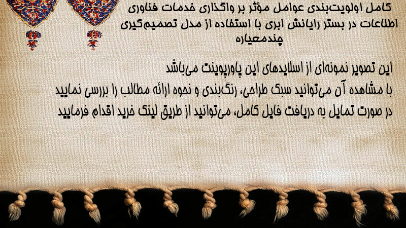 پاورپوینت کامل اولویتبندی عوامل مؤثر بر واگذاری خدمات فناوری اطلاعات در بستر رایانش ابری با استفاده از مدل تصمیمگیری چندمعیاره