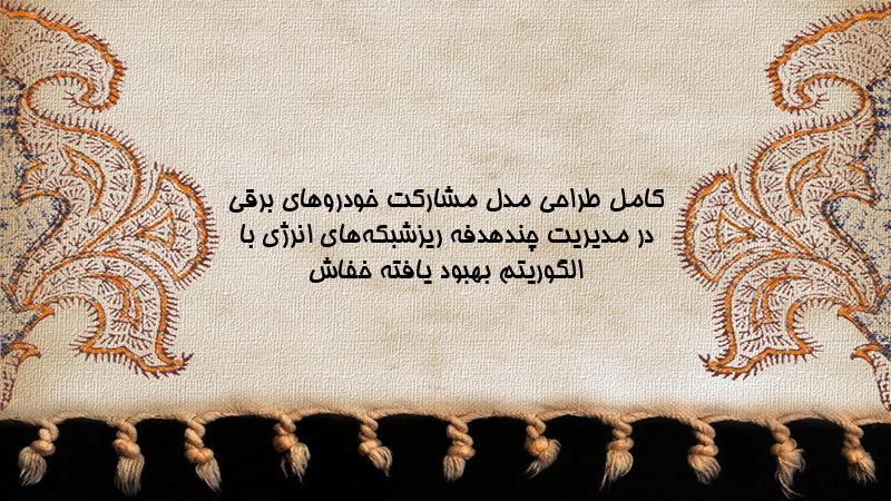 پاورپوینت کامل طراحی مدل مشارکت خودروهای برقی در مدیریت چندهدفه ریزشبکههای انرژی با الگوریتم بهبود یافته خفاش