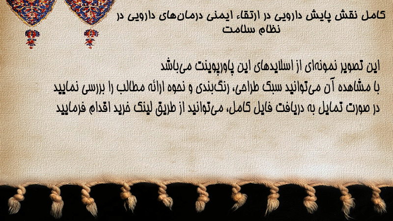 پاورپوینت کامل نقش پایش دارویی در ارتقاء ایمنی درمانهای دارویی در نظام سلامت