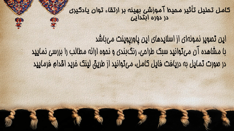 پاورپوینت کامل تحلیل تأثیر محیط آموزشی بهینه بر ارتقاء توان یادگیری در دوره ابتدایی