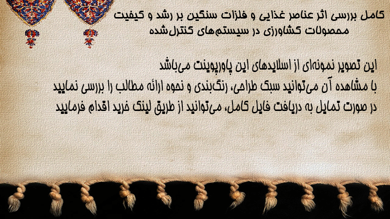 پاورپوینت کامل بررسی اثر عناصر غذایی و فلزات سنگین بر رشد و کیفیت محصولات کشاورزی در سیستمهای کنترلشده