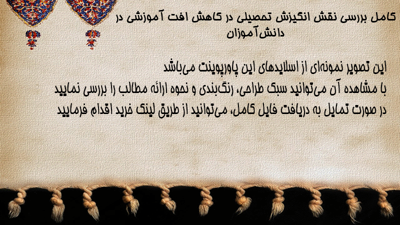 پاورپوینت کامل بررسی نقش انگیزش تحصیلی در کاهش افت آموزشی در دانشآموزان