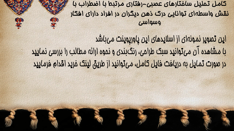 پاورپوینت کامل تحلیل ساختارهای عصبی-رفتاری مرتبط با اضطراب با نقش واسطهای توانایی درک ذهن دیگران در افراد دارای افکار وسواسی