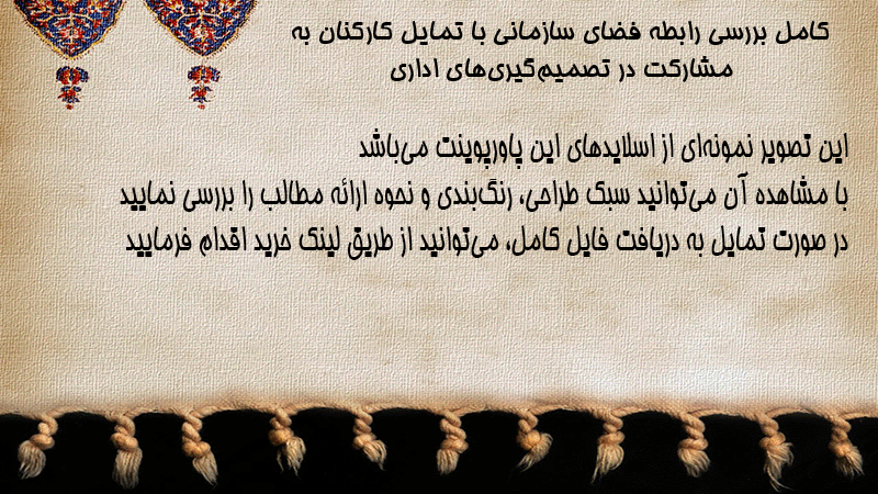 پاورپوینت کامل بررسی رابطه فضای سازمانی با تمایل کارکنان به مشارکت در تصمیمگیریهای اداری