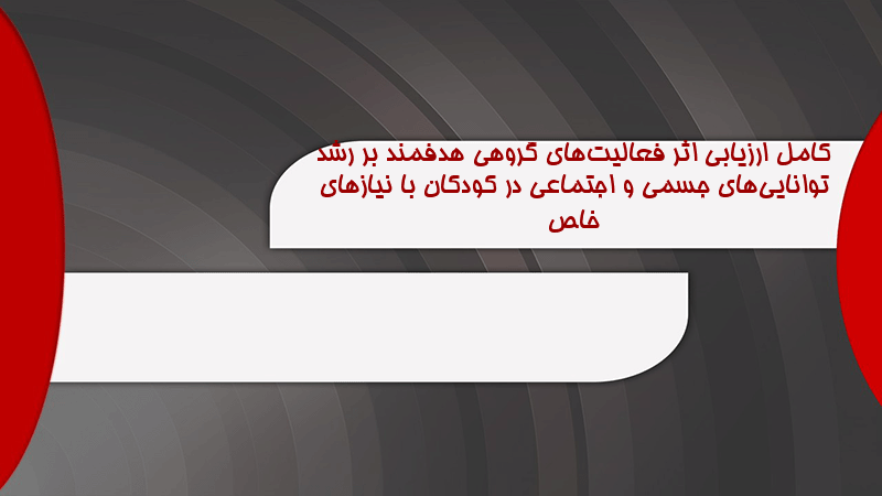 پاورپوینت کامل ارزیابی اثر فعالیتهای گروهی هدفمند بر رشد تواناییهای جسمی و اجتماعی در کودکان با نیازهای خاص