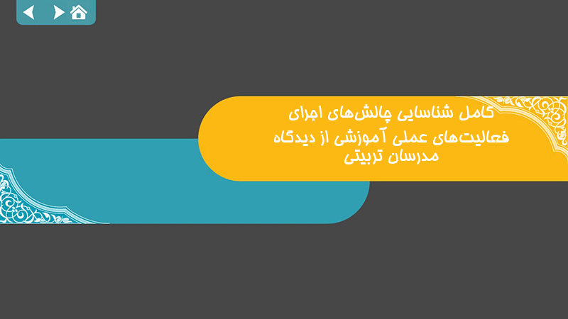 پاورپوینت کامل شناسایی چالشهای اجرای فعالیتهای عملی آموزشی از دیدگاه مدرسان تربیتی