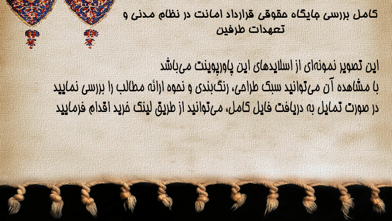 پاورپوینت کامل بررسی جایگاه حقوقی قرارداد امانت در نظام مدنی و تعهدات طرفین